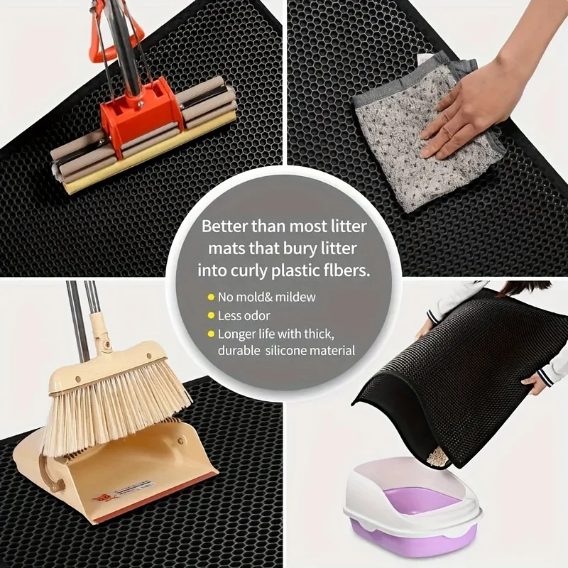 Double layer honeycomb cat litter mat – easy to clean, non-slip base – suitable for cat litter boxes and pet toilet areas