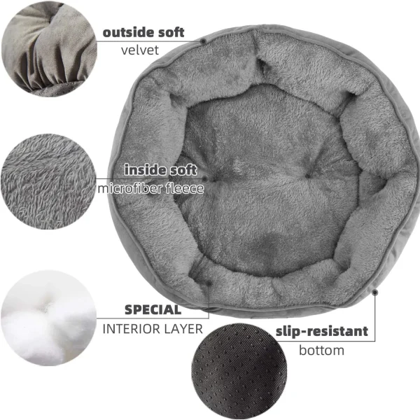 Cozy bed: This pet bed is designed with extra soft and padded materials to provide comfort and rest for dogs and cats.SUITABLE SIZE – With a size of 20 inches (50 cm approximately), it is ideal for small and medium pets.EASY CLEANING – The bed is machine washable, making it easy to maintain and maintain.NON-SLIP BASE – Features a non-slip and waterproof oxford base, preventing the bed from shifting or getting wet.Attractive design: Its neutral grey colour suits any decor and environment.